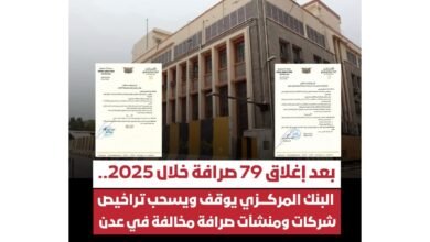 بعد إغلاق 79 صرافة خلال 2025.. البنك المركزي يوقف ويسحب تراخيص شركات ومنشآت صرافة مخالفة في عدن
