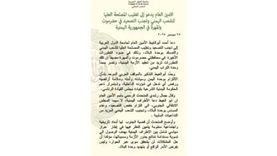 البعث نيوزـ خاصدعا الأمين العام لجامعة الدول العربية، أحمد أبو الغيط، جميع الأطراف اليمنية إلى “تجنب التصعيد وتغليب المصلحة العليا…