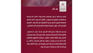 عُمان تؤكد دعمها الجهود السعودية لإحلال السلام واستقرار المهرة وحضرموت..