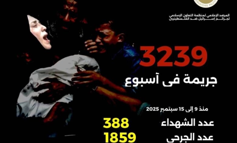 مرصد “التعاون الإسلامي” يُوثّق تزايد جرائم إسرائيل ضد الفلسطينيين خلال الأسبوع الماضي