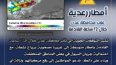 البعث نيوز – عدن توقع مركز التنبؤات الجوية والإنذار المبكر التابع للهيئة العامة للطيران المدني والأرصاد، بمشيئة الله تعالى، تأثر…