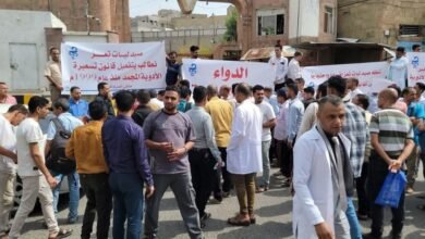 وقفة احتجاجية وإضراب جزئي للصيادلة في تعز تنديداً برفض شركات الأدوية تخفيض الأسعار
