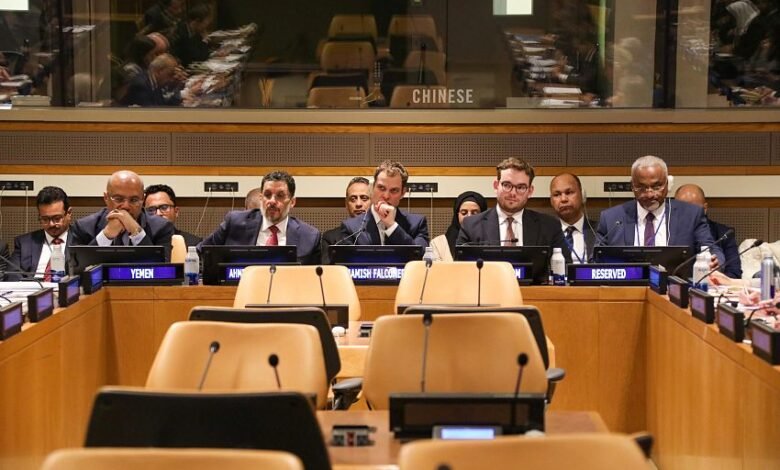 جاء ذلك في كلمته التي القاها في الاجتماع الوزاري الدولي لحشد الدعم للحكومة اليمنية، والذي نظمته الحكومة اليمنية بالشراكة مع المملكة المتحدة، في مقر الأمم المتحدة بنيويورك بمشاركة اكثر من 35 دولة، وبحضور وزير الدولة البريطاني لشؤون الشرق الأوسط هاميش فالكونر.