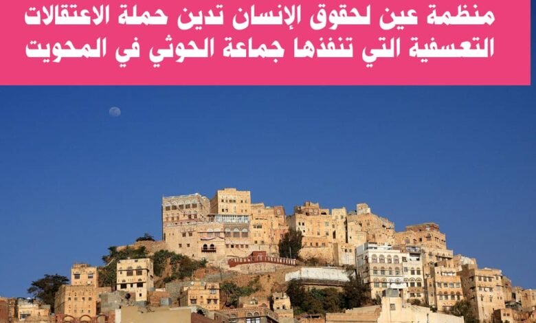 منظمة عين لحقوق الإنسان تدين حملة الاعتقالات التعسفية التي تنفذها جماعة الحوثي محافظة المحويت