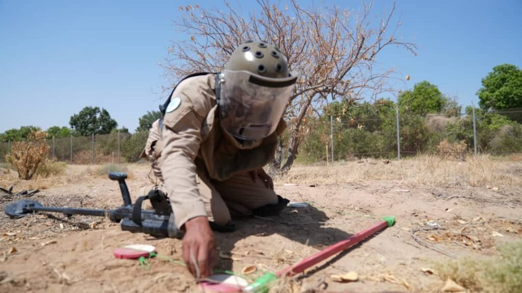 وتضمّن البرنامج تنفيذ تدريبات ميدانية على تطهير الألغام باستخدام منهجية “تقسيم الأرض إلى مربعات” (Block Clearance)، وهي تقنية تُستخدم خاصة في الحقول التي تفتقر إلى علامات واضحة.