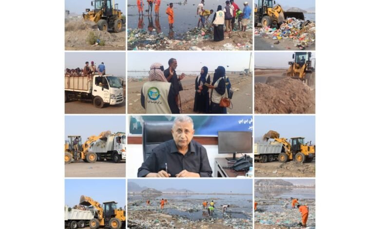 دشن صندوق النظافة وتحسين مدينة عدن صباح اليوم. حملة النظافة الشاملة لتنظيف محمية بحيرة البجع،