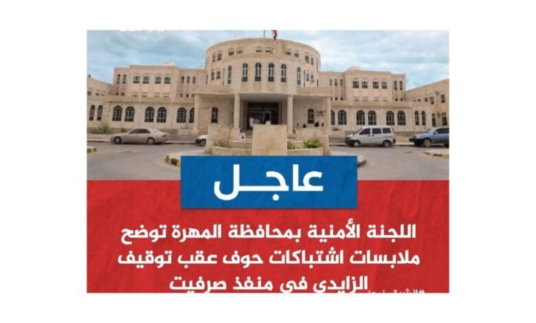 أصدرت اللجنة الأمنية بمحافظة المهرة بيانًا أوضحت فيه ملابسات الاشتباكات التي وقعت في مديرية حوف، وذلك عقب إيقاف محمد أحمد علي الزايدي، أحد المطلوبين أمنيًا، في منفذ صرفيت الحدودي مع سلطنة عمان.