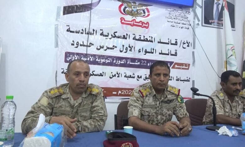 قيادة اللواء 22 مشاة تنظم دورة توعوية أمنية لضباطها بالتنسيق مع شعبة الأمن العسكري بالمنطقة السادسة