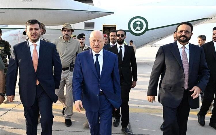 رئيس مجلس القيادة وعضوا المجلس سلطان العرادة وعبدالله العليمي يعودون الى العاصمة المؤقتة عدن