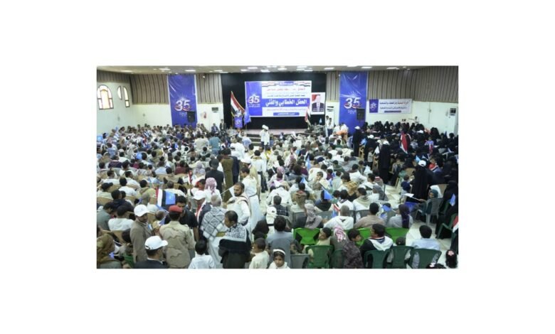 إصلاح المحويت يقيم مهرجاناً خطابياً وفنياً بمدينة مأرب احتفاءً بالذكرى الـ35 لتأسيس الحزب.