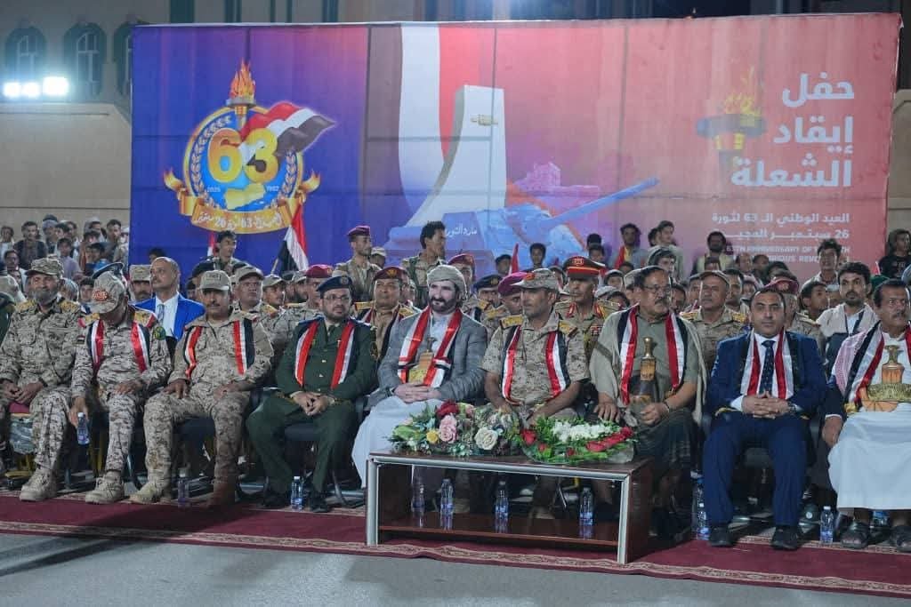 رئيس هيئة الأركان العامة ووكيل محافظة مأرب يوقدان الشعلة الأم للعيد الـ63 لثورة 26 سبتمبر