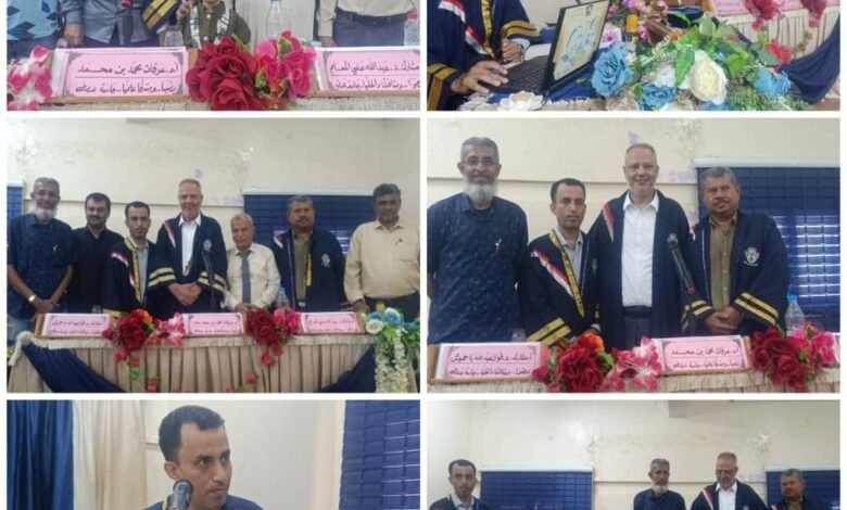 واشادت لجنة المناقشة المكونة ا مشارك دكتور عبد الله علي المعلم عضوا ومناقشا داخليا جامعه عدن ، ا د عرفات محمد بن محمد رئيسا مشرفا علميا جامعه عدن ،ا مشارك دكتور فواز عبد الله باحميش عضوا ومناقشا داخليا جامعه عدن بمضامين الرسالة والنتائج التي توصلت إليها والتوصيات الصادرة عنها .