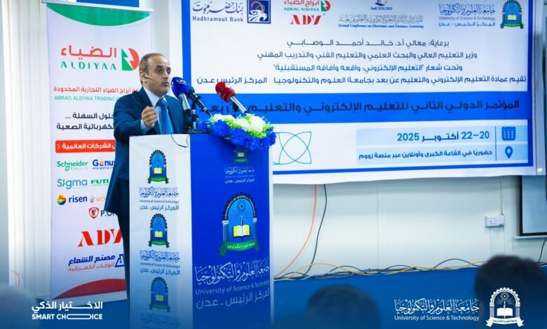 انطلاق فعاليات المؤتمر الدولي الثاني للتعليم الإلكتروني والتعليم عن بُعد في جامعة العلوم والتكنولوجيا – عدن