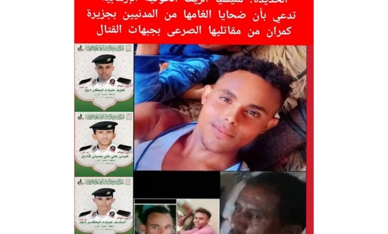 في سياق متواصل لانتهاكاتها الإعلامية، ادعت مليشيا الحوثي أن ثلاثة مدنيين من ضحايا ألغامها البحرية في جزيرة كمران التابعة لمحافظة الحديدة، هم من “مقاتليها” الذين سقطوا في جبهات القتال.
