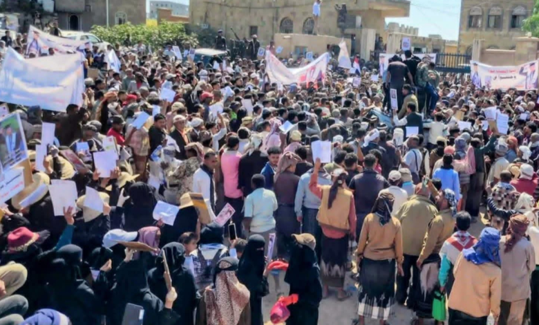 تظاهرة غضب في محافظة تعز بمدينة التربة تندد بمقتل الشاب النجاشي على يد أفراد الشرطة.