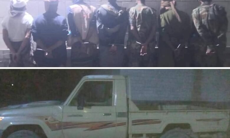 امن أبين يعلن اعتقال قائد نقطة “أمعين” و5 من أفراده بتهمة الابتزاز والاعتداء على سائق مصري على الخط الدولي