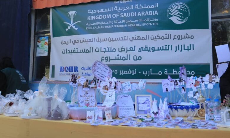 “ائتلاف الخير” يدشن في مأرب بازار التمكين المهني لمنتجات 90 مستفيدة بتمويل من مركز الملك سلمان.