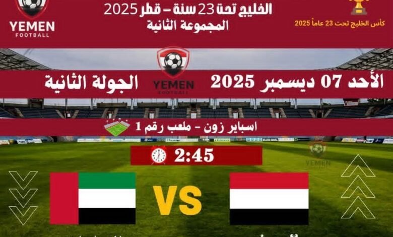 تستعد العاصمة القطرية لمشهد كروي مشتعل اليوم الأحد، عندما يتقاطع مسارا المنتخب اليمني الأولمبي ونظيره الإماراتي في مواجهة حاسمة ببطولة كأس الخليج تحت 23 سنة. اللقاء الذي سينطلق في الثانية و45 دقيقة بعد الظهر بتوقيت اليمن على ملعب “سباير 1″، ليس مجرد مباراة عابرة، بل بوابة رئيسية نحو نصف النهائي.