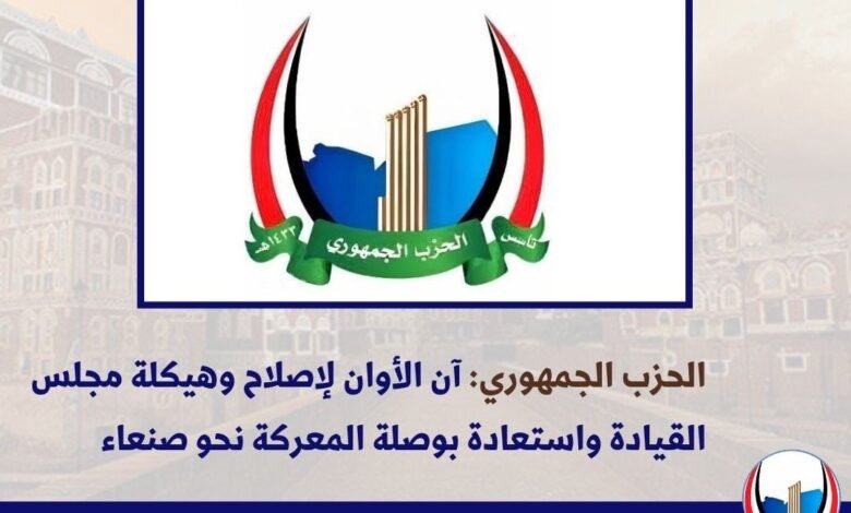 وجدد الحزب الجمهوري التأكيد على أن “استعادة العاصمة صنعاء هي استعادة الجمهورية والوحدة والديمقراطية”، معتبراً ذلك الغاية الأساسية لبناء “اليمن الاتحادي”