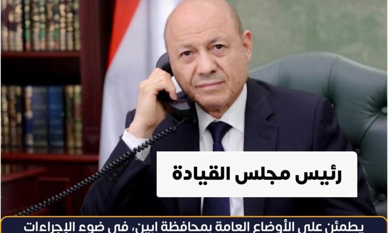 فخامة رئيس مجلس القيادة الرئاسي يتصل بمحافظ أبين: “أبين ستظل محل اهتمام ورعاية الدولة