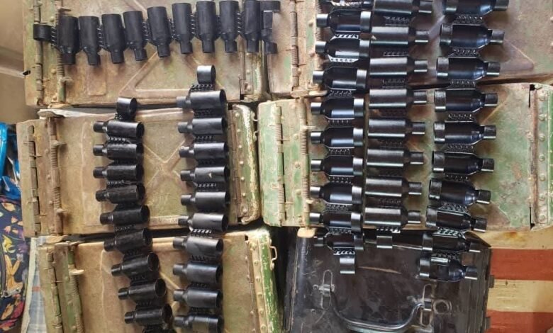 ووفقاً لمصدر أمني ميداني، أسفرت عملية التفتيش الدقيق عن ضبط عدد من قذائف الدبابات، وأشرطة ذخيرة عيار 14.5 مم، بالإضافة إلى صناديق ذخائر متنوعة، تم التحفظ عليها بشكل فوري.