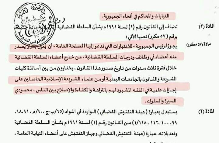 واضاف صبره، في منشور على صفحته بالفيسبوك رصده “تهامة 24″، ان مليشيا الحوثي تسعى من خلال هذه النصوص تعيين قضاه من طلاب معهد العلوم الشرعية الذين تعدهم منذ فتره وهذا يعني إستكمالا للسيطرة المطلقة على السلطة القضائية، بالاضافة إلى إستهداف كيان نقابة المحامين برمته كون النقابة هي الكيان الوحيد الذي لا يزال يتمتع بإستقلاليه نوعا ما وإن كانت غير مكتملة.