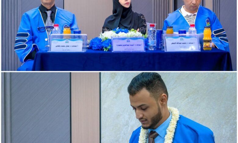 جرت المناقشة العلنية للرسالة، في قاعة السمنار بمبنى الجامعة، وقد تألّفت لجنة مناقشة الرسالة من، أ.د. أميمية عبدالعزيز باحيدرة – مشرفاً ورئيساً جامعة العلوم، وأ.د وهيب عبدالله الأبيض- عضواً ومناقشاً داخلياً جامعة العلوم، وأ.د. جمال محمد بافقاس – عضوًا ومناقشاً خارجياً جامعة عدن.