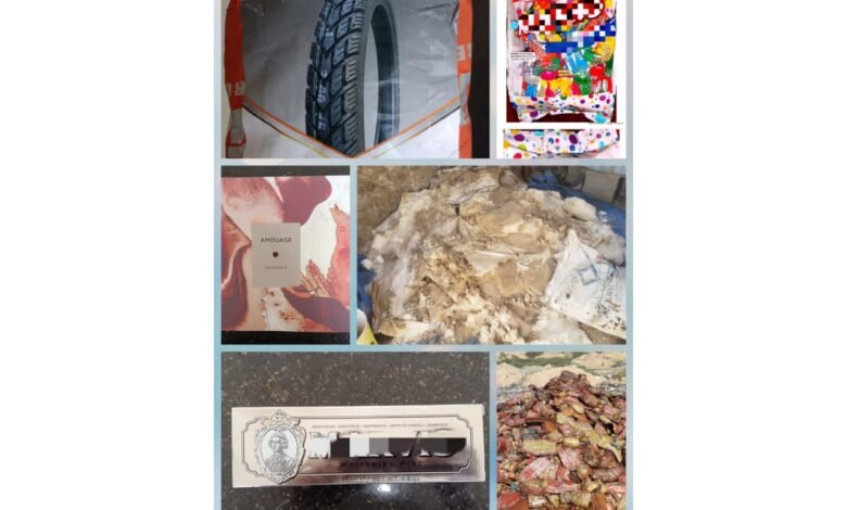 ورفض وإتلاف 12449 عبوة معجون وطلاء جدران، مخالف لتضرر العبوات، وكمية من السكر الأبيض لتعفن المنتج نتيجة تعرضه للبلل، تم الاتلاف في مقلب المنطقة الحرة وبمشاركة جمارك المنطقة الحرة والجهات ذات العلاقة.