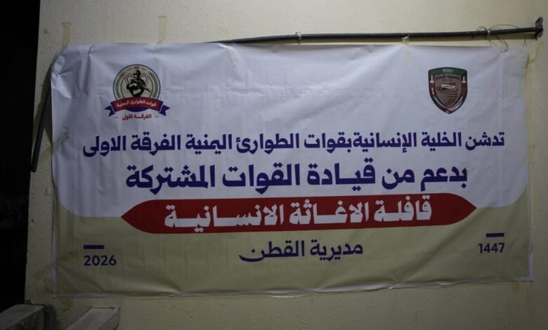 دشنت في مديرية القطن بمحافظة حضرموت قافلة إغاثة إنسانية تنفذها الخلية الإنسانية التابعة لقوات الفرقة الأولى – قوات الطوارئ اليمنية، بدعم من قيادة القوات المشتركة، ضمن جهود دعم الأسر الأشد احتياجًا وذوي الدخل المحدود.