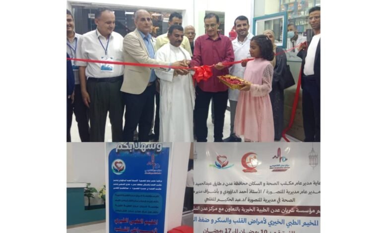 مركز عدن التشخيصي يدشن المخيم الطبي الخيري لأمراض القلب والسكر وضغط الدم في العاصمة عدن.