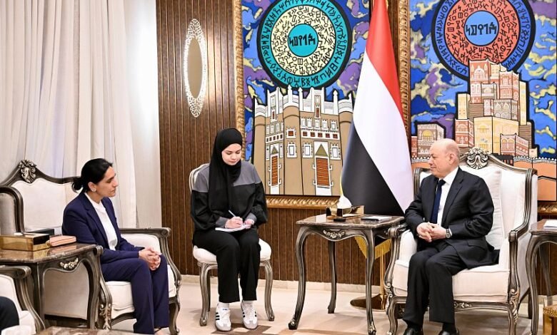 استقبل فخامة الرئيس الدكتور رشاد محمد العليمي، رئيس مجلس القيادة الرئاسي، اليوم الاثنين، سفيرة المملكة المتحدة، عبدة شريف.