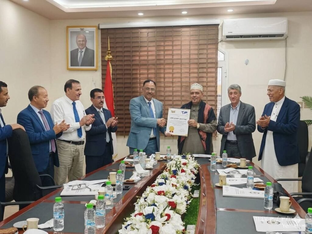 وفي ختام الاجتماع، سلّم رئيسا مصلحة الجمارك والغرفة التجارية، شهادة المشغل الاقتصادي الـ 22 إلى شركة بلفقيه للإليكترونيات والحلول الأمنية ممثلة بمديرها العام جمال بلفقيه.