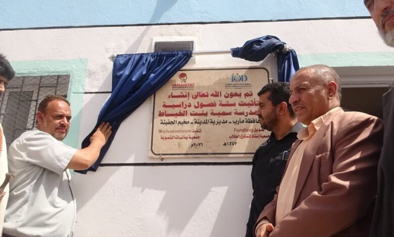 مأرب: افتتاح ستة فصول إضافية مع التأثيث بمدرسة سمية بمخيم الجفينة للنازحين