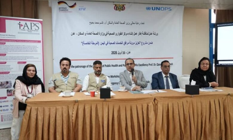انعقاد ورشة عمل في عدن حول إنشاء مركز عمليات طوارئ الصحة العامة في اليمن