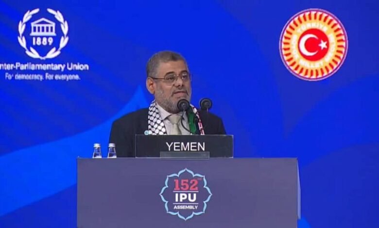 وأكد على ضرورة قيام البرلمان الدولي بتجميد عضوية الكيان الاسرائيلي في البرلمان الدولي والمحافل البرلمانية وايقاف التعامل مع الكيان الصهيوني برلمانيا لأنه أخل وانتهك بالقيم الإنسانية والأخلاقية المتعارف عليها في هذه المحافل، وكذا ضرورة الاعتراف بدولة فلسطين والتمكين لها بمقاعد في المنابر الدولية، وإيقاف كل الاتفاقات الدولية العسكرية مع الكيان الإسرائيلي، والتنفيذ الفوري لقرارات محكمة الجنايات الدولية في لاهاي الصادرة في 24 نوفمبر 2024م على رئيس الكيان الاسرائيلي ووزير دفاعه باعتبارهم مجرمي حرب لارتكابهم جرائم ضد الإنسانية، إضافة إلى إيقاف عمل الشركات والأشخاص الاعتباريين الداعمين للكيان الصهيوني والمتفاخرين بذلك عبر منصات الاعلام وتجريم أعمارهم باعتبارهم ممولين لكيان إرهابي وعدواني ضد الإنسانية.