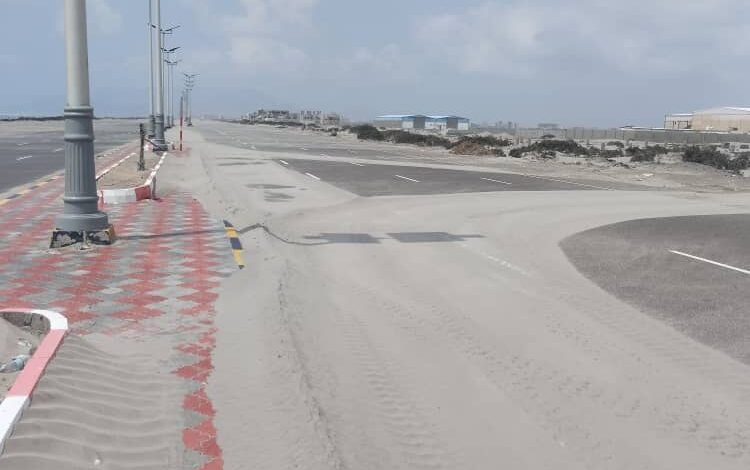 نفذ صندوق النظافة والتحسين بعدن. صباح اليوم حملة لإزاحة الكثبان الرملية من خط ساحل أبين ابتداء من جولة الرحاب وحتى جولة المجاري ( محطات المعالجة ) بمنطقة غازي علوان.