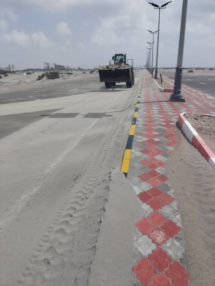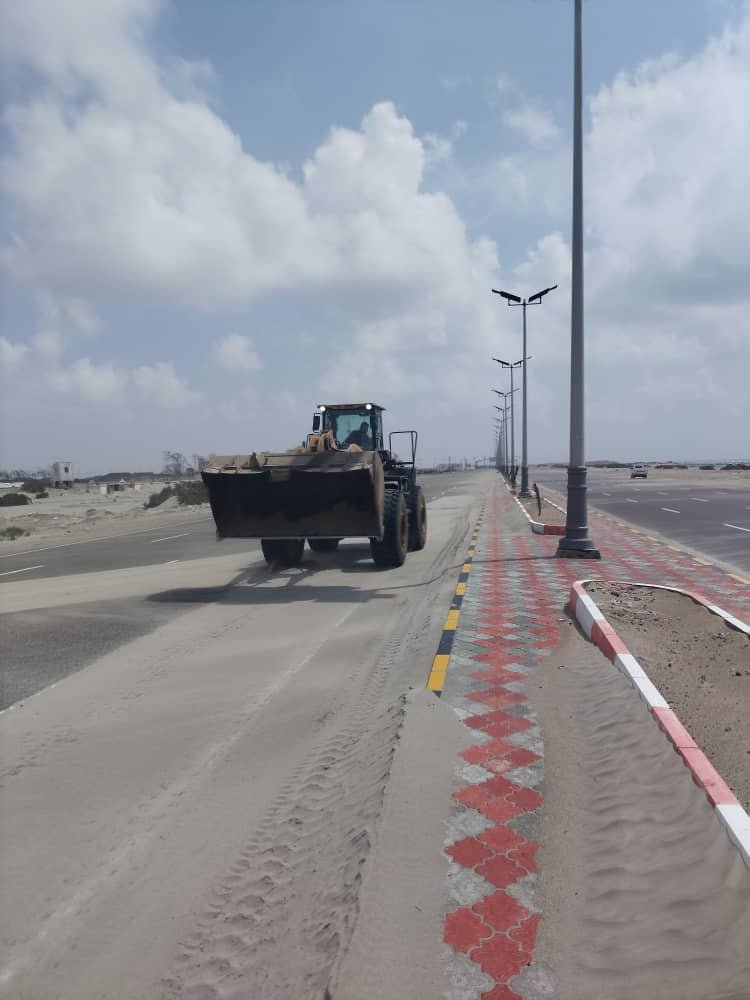 واسهاما من الصندوق في إزاحة الكثبان الرملية من خط جولة المجاري – ساحل أبين . نظرا لما يمثله من إعاقة لحركة سير المركبات والسيارات وما يسببه ذلك من حوادث مرورية لاسمح الله . قد تؤدي إلى وقوع العديد من الضحايا والاصابات والخسائر المادية للممتلكات .ناهيك عما يمثله خط ساحل أبين من وجهة لمدخل البوابة الشرقية لمدينة عدن .