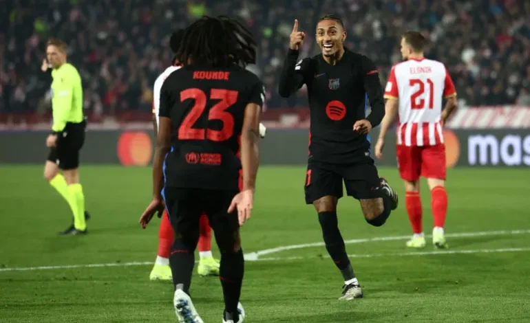 فاز فريق برشلونة الإسباني 5-2 على مضيفه سرفينا زفيزدا (النجم الأحمر) الصربي في الجولة الرابعة لدوري أبطال أوروبا لكرة القدم موسم 2024-2025.