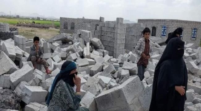 مسلحين تابعين لمليشيا الحوثي الإيرانية الإرهابية يهدمون منزل ويتركون النساء والأطفال في العراء