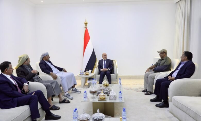 زار رئيس مجلس القيادة الرئاسي الدكتور رشاد العليمي، ومعه عضوا المجلس، اللواء عيدروس الزبيدي، والشيخ عثمان مجلي في مدينة دبي، عضو مجلس القيادة الرئاسي، العميد طارق صالح.