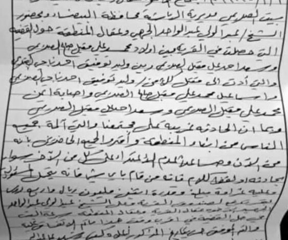 جاء ذلك في بيان أصدره مشايخ وشباب القبيلة يوم الأحد، عبّروا فيه عن استيائهم من التجاهل المستمر لحقوقهم؛ وأكد المشاركون في الاعتصام أنهم صبروا طويلاً على هذه الممارسات، لكن استمرار التهميش دفعهم لاتخاذ هذا القرار التصعيدي.